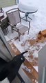 The owners of these huskies let them out of the house after it snowed. As soon as they opened the door, all the dogs ran outside at once. They jumped and played in the snow excitedly. Some of them dug in the snow, while one of them also seemed to get stuck funnily.