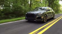 The biturbo V8 in the new RS Q8 combines maximum performance and high efficiency. Its mild-hybrid system (MHEV) is based on a 48-volt main electrical system. The core of the MHEV is a belt alternator-starter connected to the crankshaft. During deceleration and braking, it can recover up to 12 kW of power and store it in the compact lithium-ion battery. If the driver takes their foot off the accelerator at a speed between 55 and 160 km/h (34.2 to 99.4 mph), the drive management selects one of two solutions depending on the driving situation and the current setting of the Audi drive select dynamic handling system: The new RS Q8 recuperates or coasts for up to 40 seconds with the engine off. The belt alternator starter starts the engine within fractions of a second when the accelerator is actuated. MHEV technology allows for start/stop operation at a speed of up to 22 km/h (13.7 mph). The mild-hybrid system is connected to the camera sensors for even greater efficiency. When stopped, the engine starts up while the brake pedal is still depressed as soon as the front camera detects that the vehicle in front of the new RS Q8 begins to move.