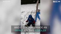 Skier Jumps Over Snow-Covered Tree and Tumbles Forward