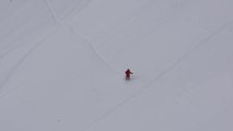Skier Crashes While Going Downhill on Snowy Mountain