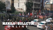 MPD anti-riot police officers block a militant group at Sta. Cruz bridge