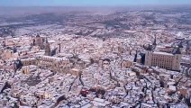 La espectacular estampa de Toledo totalmente nevado visto desde el aire