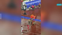 Giant Dinosaur Prop Appears to Swallow Person During Stadium Rehearsal