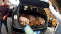 Police stop car with 20 pigs in the boot