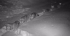 Il filme une meute de loups en file indienne dans la neige quelque part en Savoie