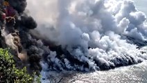 Steam rose up from the frigid waters of Lake Superior off the coast of Duluth, Minnesota, during the morning of Feb. 8.