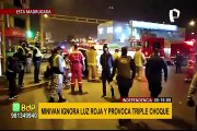 Cámaras de seguridad captaron el preciso momento en que el conductor de la camioneta ignoró la luz roja del semáforo y atropelló al motorizado.