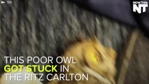 Occurred on February 6, 2021 / Easley, South Carolina, USA<br /><br />Info from Licensor: "We were driving to dinner on a Friday night went out of the corner of her eye we saw something brown and then our car hit something. We thought it was perhaps a cat. The next day at 11 AM my husband noticed some feathers on his grill and took a closer look. Then the owl turned his head around and looked him in the eye and scared the crap out of him. We called a wildlife rescue person, he was able to get him out pretty quickly. He was very calm during the whole ordeal. He is currently under observation and will be given a flight test this week. If he passes he will be brought back to our house to be released since his mate was probably nearby. If he does not pass the flight test he will go to Charlotte for rehab."