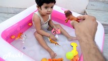 This dog loved being in the water. They jumped and played inside the inflatable pool along with the little girl. The dog even chased the girl out of excitement.