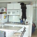 Un chien attrape des biscuits rangés dans un tiroir