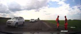 Car driving in countryside of Russia ¦ Road works Car trip video