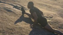 This little boy wanted to perform a trick. He ran towards a tree and showcased a backflip off it. The boy successfully landed on the ground as people cheered him on.