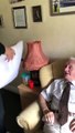 O emocionante momento em que idoso recebe almofada...com a foto da mulher