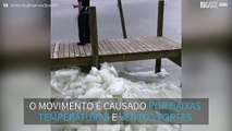 A combinação de baixas temperaturas e ventos fortes causaram um fenômeno impressionante em Outer Banks