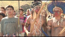 En la parte superior del video, a la derecha, donde están las "rayitas" se activan los subtítulos en español. <br />El gobierno Bolsonaro a través de la FUNAI y el IBAMA (Organismos del gobierno federal sobre política indígena y del medio ambiente, respectivamente) editó una norma que permite que los pueblos originarios de Brasil hagan "asociaciones" con no indios para hacer plantaciones en sus tierras. <br />El miedo es que los sojeros empiecen a destruír y quieran acaparar todas las tierras.