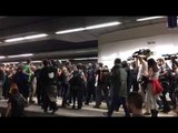 Manifestants ocupant les vies de l'AVE davant els mossos i la policia nacional