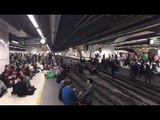 Crits de "Els carrers seran sempre nostres" dels manifestants a l'interor de l'Estació de Sants