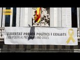 La pancarta per la llibertat dels presos polítics torna al balcó del Palau de la Generalitat
