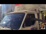 Alta tensión con una furgoneta que retira lazos amarillos