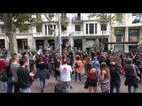 Un grup de manifestants antifeixistes persegueixen ultres espanyolistes
