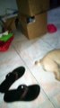 cute cat sleeping at shoe rack