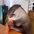Precious Pet Otter Munches on Fresh Salmon