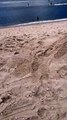 This dog is making the most of his vacation at Playa Del Carmen, Mexico! He didn't stay on the sands though, instead he made the most of his inflatable duck to relax on the cool blue waters.