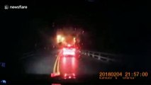 Flying boulders nearly strike cars during Taiwan quake