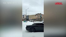 Texas, a Denton gli abitanti si divertono sulla neve con slitte improvvisate