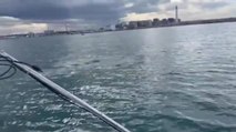 I turisti a bordo della nave sono stati sorpresi da un gruppo immenso di delfini che saltavano simultaneamente al lato della nave.