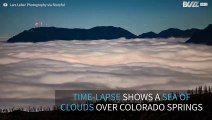 Fotograf Lars Leber lagde en time-lapse av det utrolige øyeblikket hvor skyene skaper en havlignende scene på morgenkvisten over Colorado Springs, USA .