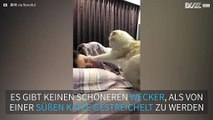 Diese Katze versucht ihre Besitzerin sanft zu wecken... ein exzellenter Weckruf. Nur funktioniert er leider nicht, wenn man tief und fest schlummert!