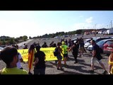 Els manifestants criden "Passi-ho bé" a la policia. Guàrdia Civil i Mossos arriben a la Jonquera
