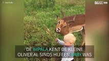 Churro is dikke vrienden met deze peuter. Hij vindt het erg vervelend dat er een raam tussen hen zit maar dat weerhoudt hem er niet van te laten zien dat hij dol is op de peuter.