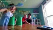 Tony Wind impressed his 4-year-old daughter, Lily, with a very simple magic trick, making the ball disappear from under a plastic cup. The girl from Minnesota couldn't believe her dad's magic skills!