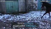 Os cavalos de Suzanna Crampton acordaram animados para passear no campo onde vivem, na Irlanda. Ao verem que a neve cobriu todo o espaç