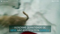 Cadela adorável corre enterrada na neve
