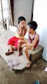 Crazy life - baby cow playing with a baby in India