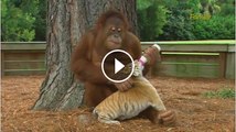 Wonderfull monkey feeding Tiger child