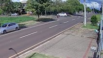 Câmera mostra carro passando por cima de moto em cruzamento no bairro Coqueiral
