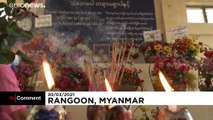 Khine Zar Thwe's portrait, flashing the anti-coup three-finger salute, was proudly displayed on her coffin at her funeral. The 26-year-old protester was shot in the head in March, and was one of hundreds to lose their lives in protests since a military coup on February 1.