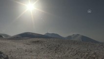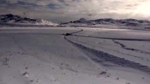 Erzurum'da ilkbahar mevsimine rağmen karla mücadele ekiplerinin kardan kapalı Tekman yolunu açma çalışması, drone ile görüntülendi.