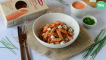 Penne de lentilles corail à la crème de poivrons et feta