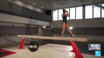 This little girl walked on a gymnastic balance beam while dancing. The four-year-old was doing a walk challenge which her gymnastics coach had trained her for. The spunky kid walked confidently on the balance beam and showed her cool dance moves.<br /><br /> <br /><br />*The underlying music rights are not available for license. For use of the video with the track(s) contained therein, please contact the music publisher(s) or relevant rightsholder(s).