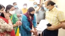 Woman touches Noida CMO's feet, begs for Remdesivir