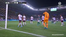 FICHA TÉCNICA<br />PALMEIRAS 1 (3) x (4) 2 DEFENSA Y JUSTICIA-ARG<br />Data: 14 de abril de 2021, quarta-feira<br />Local: Estádio Mané Garrincha, em Brasília<br />Horário: 21h30 (de Brasília)<br />Árbitro: Leodan Gonzalez (URU)<br />Assistentes: Nicolás Taran e Richard Trinidad (ambos do URU)<br />VAR: Julio Bascuñán (CHI)<br />Cartões amarelos: Wesley, Patrick de Paula e Marcos Rocha (PAL); Loaiza, Frias e Benitez (DYJ)<br />Cartão vermelho: Matias Viña (PAL); Braian Romero (DYJ)<br />Gols:<br />PALMEIRAS: Raphael Veiga (22min 1º Tempo)<br />DEFENSA Y JUSTICIA: Braian Romero (30min do 1º Tempo) e Benitez (47min do 2º Tempo)<br /><br />PALMEIRAS: Weverton; Marcos Rocha (Luiz Adriano), Luan, Gustavo Gomez e Matias Viña; Danilo, Patrick de Paula (Felipe Melo) e Raphael Veiga (Gabriel Menino); Breno Lopes (Mayke), Wesley (Gabriel Veron e depois Alan Empereur) e Rony<br />Técnico: Abel Ferreira<br /><br />DEFENSA Y JUSTICIA: Unsain; Rodriguez (Britez), Frias, Meza e Benitez (Breitenbruch); Loaiza (Hachen), Fernandez, Pizzini (Merentiel) e Rotondi (Isnaldo); Braian Romero e Walter Bou (Escalante)<br />Técnico: Sebastián Beccacece<br />