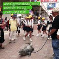 This man was friendly with an alligator. He petted the animal on the head as well as kissed it. The alligator had its mouth wide open the whole time.