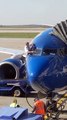 Occurred on April 3, 2021 / Kansas City<br /><br />Info from Licensor: "We saw these two Southwest pilots open the cockpit windows and balance precariously 25 feet above the concrete while cleaning the plane windshield with what looked like cocktail napkins. First, who knew those windows even opened? Second, is there not a better/safer system for cleaning the windshield of a 737? My Ford does this at the push of a button. Just thought it was funny to see two highly qualified pilots doing menial labor. But, hey, respect!"