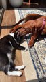 Heartwarming Moment Doggy Helps Clean Kitty