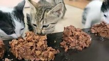 Daily life of kittens and tiny chicks